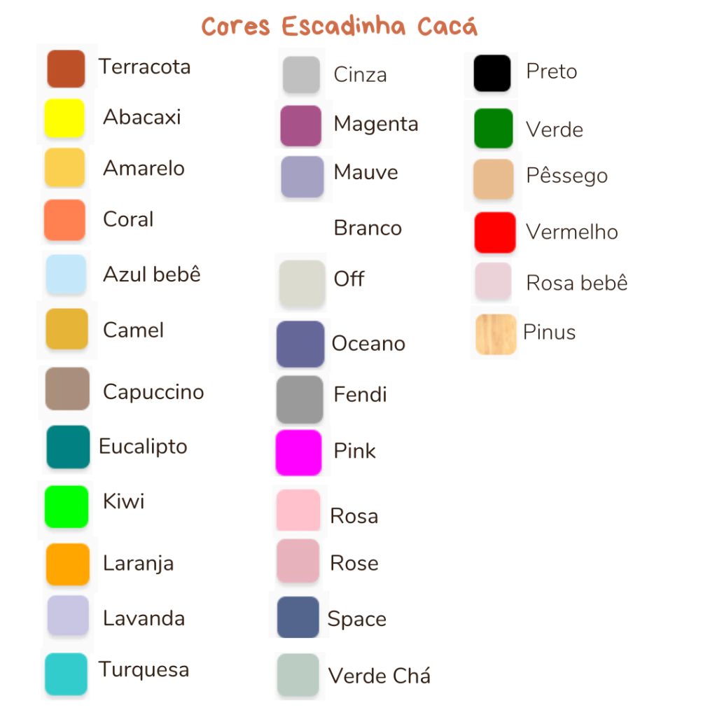 IMPORTANTE: As cores podem sofrer alterações por conta da tela do computador, celular ou tablet.