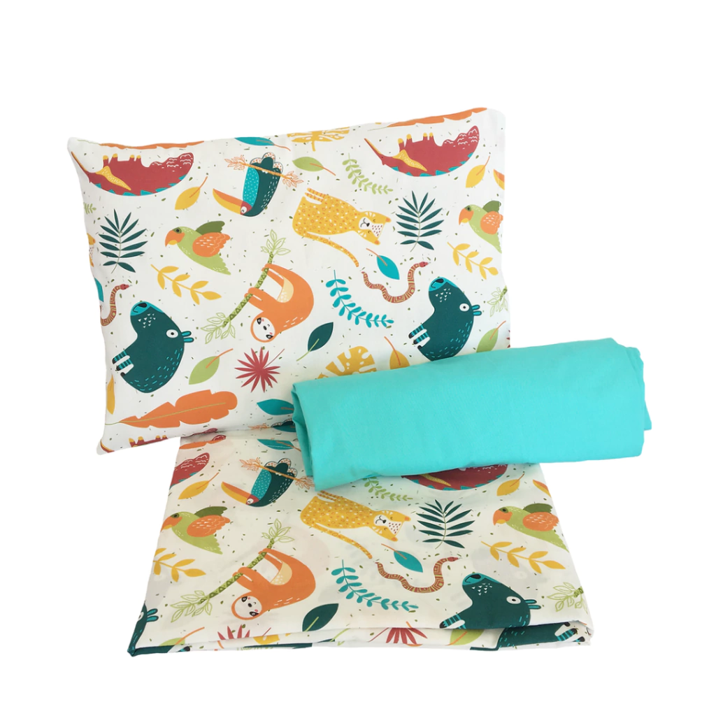 O jogo é composto por Lençol de cima + Lençol de baixo com elástico + Fronha