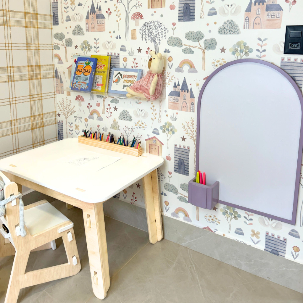 Além de estimular a criatividade e coordenação motora, a Lousa Kids também é um item decorativo encantador, combinando perfeitamente com diferentes estilos de quarto infantil.