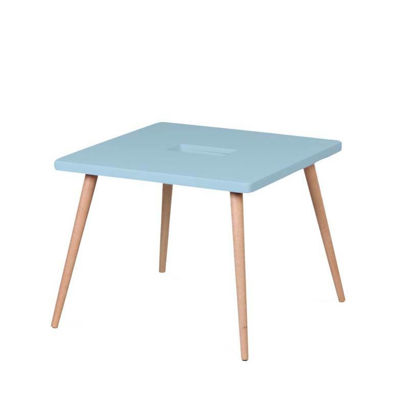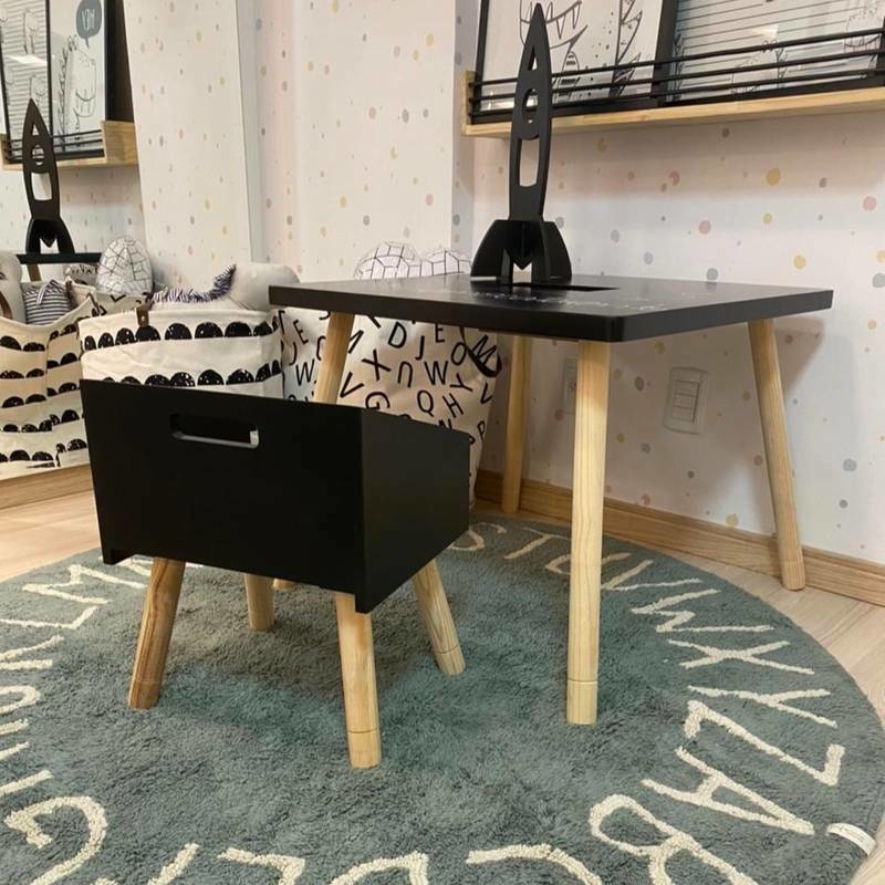 Mesa infantil com tampo em MDF com pintura laqueado fosco e pés em madeira de pinus.