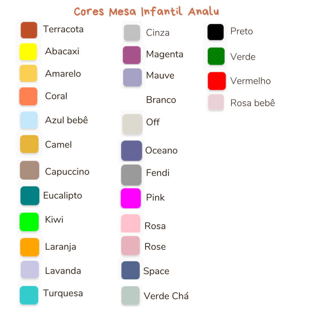 IMPORTANTE: As cores podem sofrer alterações por conta da tela do computador, celular ou tablet.