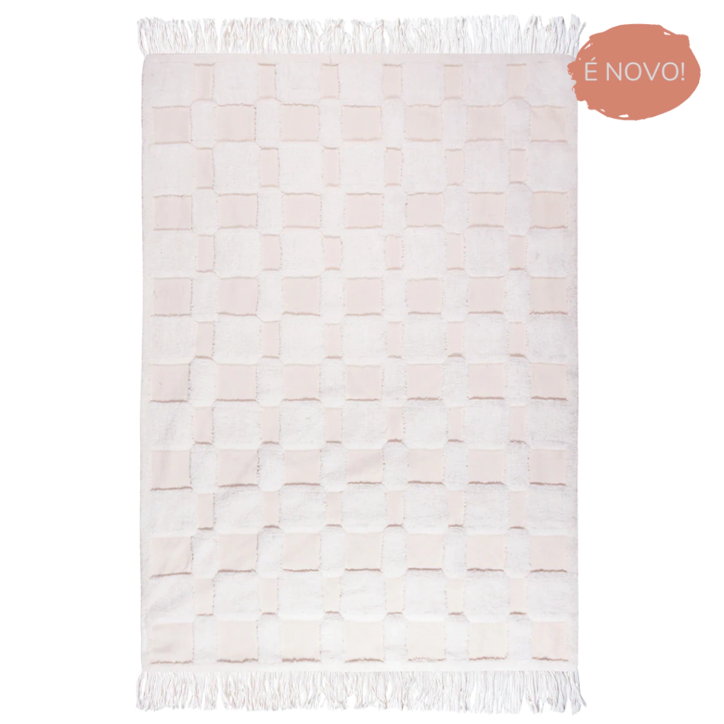 Os tapetes de algodão são feitos 100% da fibra de algodão orgânico, são hipoalérgicos e tingidos com tintas atóxicas. Por serem super macios, são perfeitos para quartos infantis.