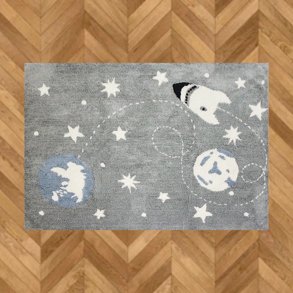 Os tapetes de algodão são feitos 100% da fibra de algodão orgânico, são hipoalérgicos e tingidos com tintas atóxicas. Por serem super macios, são perfeitos para quartos infantis.
